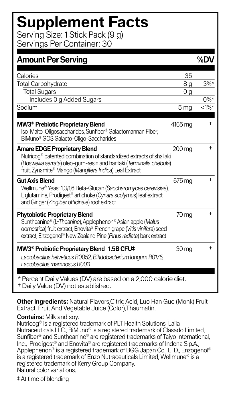 - A blend of probiotics, prebiotics, and neuro-nutrients in one unique--and delicious--formula.